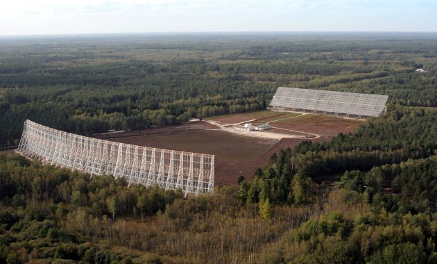 Nançay is the French version and twice as big as Big Ear. As seen on the right, the main radio telescope consists of two reflective systems, a movable “mirror” plane (at the bottom of the image) and a fixed “curved” mirror (in the foreground) of a ray curvature of 560 m. The movable reflector in elevation consists of panels forming a plane of 200×40 m which reflects the signals to a second fixed curved reflector of 300×25 m which focuses the signals on two receivers located 280 m distance to the center of the field and operating globally between 1 -3.5 GHz. The installation is equivalent to a parabola 100 m in diameter. Its resolution is about 1 “.